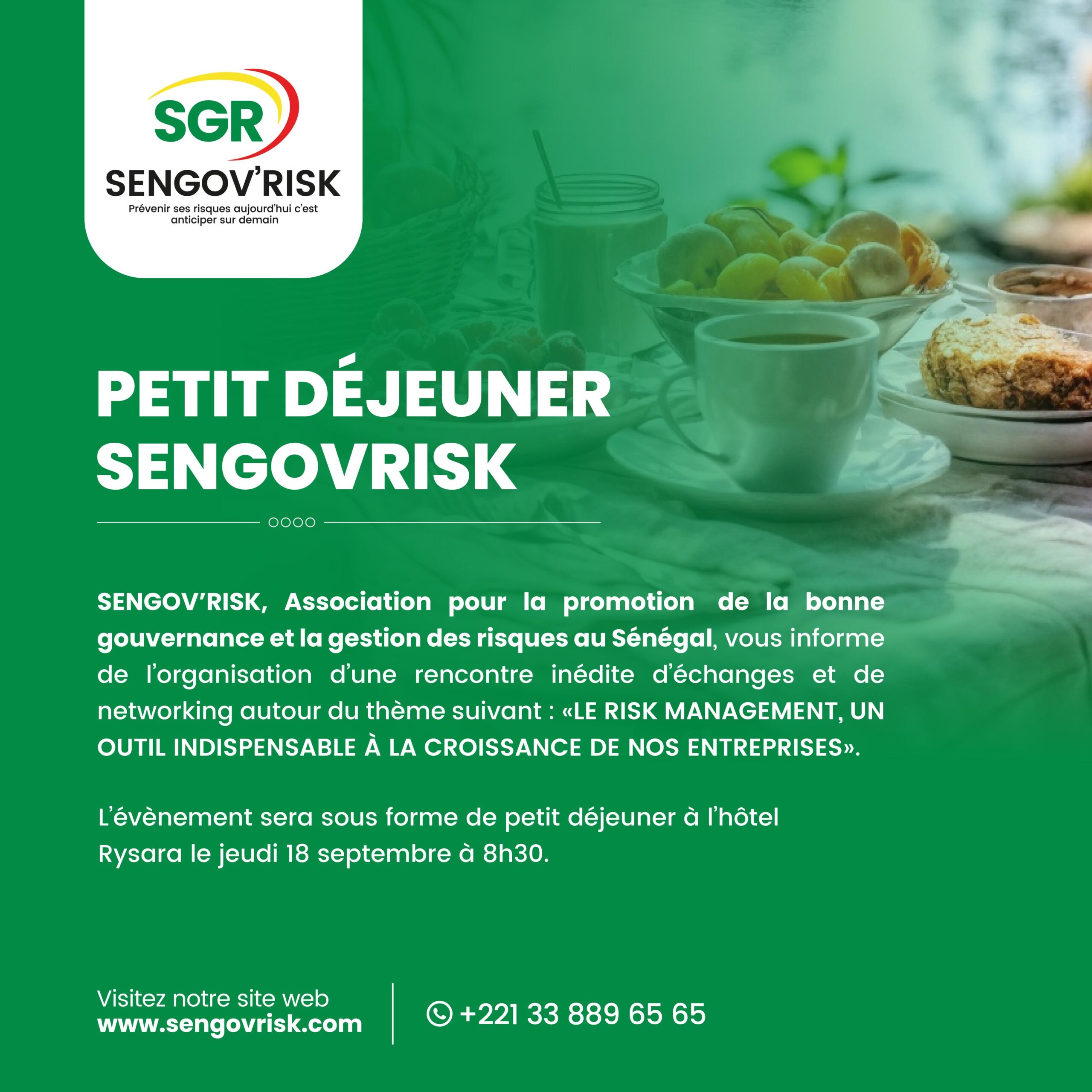 Hôtel RYSARA DakarL’Association SENGOV’RISK, association pour la promotion de la bonne gouvernance et la gestion des risques au Sénégal, a le plaisir de vous convier à un moment inédit d’échanges et de networking autour du thème suivant : 👉 « Le Risk Management, un outil indispensable à la croissance de nos entreprises » Cet événement sera l’occasion […]